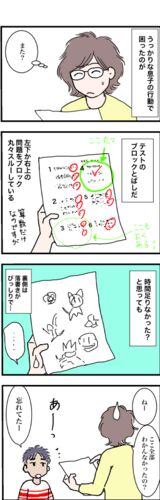 再録の日です 後半へ続く 息子のうっかりシリーズ?です。これかなり前に描いたもので、本当は全部描き直したいくらいなんですが…。それやり始めると新しいのが増えないので。…すみません 息子本当にうっかりで。クラスで何かあった時に、まずあいつだろうと…